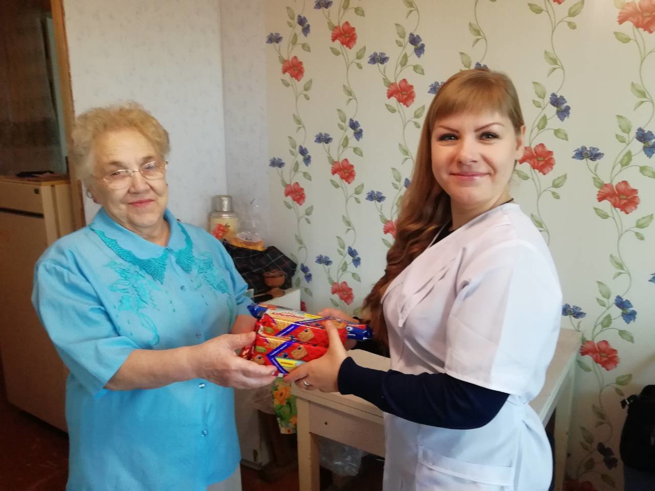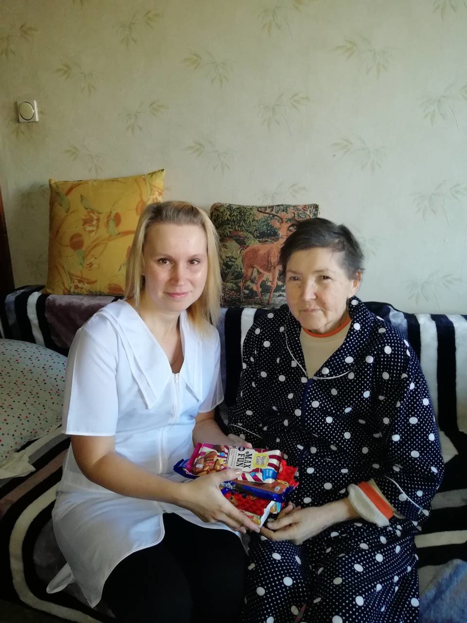 В отделениях надомной службы никто не остался без внимания, всем инвалидам-получателям социальных услуг были вручены сладкие подарки.