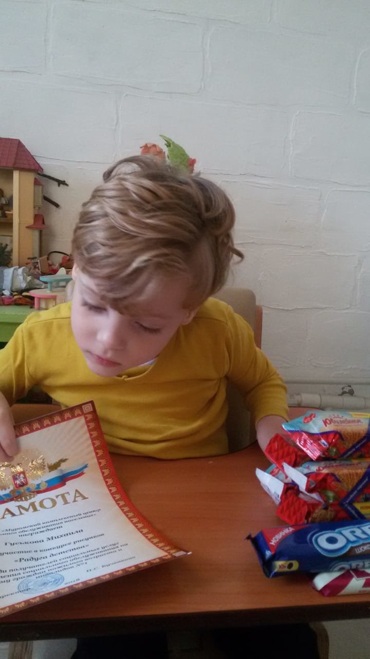 Был проведен конкурс рисунков детей-инвалидов, состоящих на надомном социальном обслуживании «Радуга детства». В этом конкурсе приняли участие 5 детишек, были представили 15 интересных работ, выполненные в различной художественной технике: карандаш, акварель, гуашь и аппликация. Всем участникам были вручены сладкие подарки.