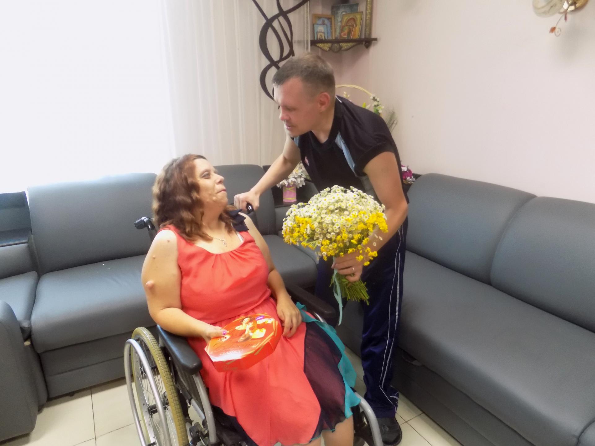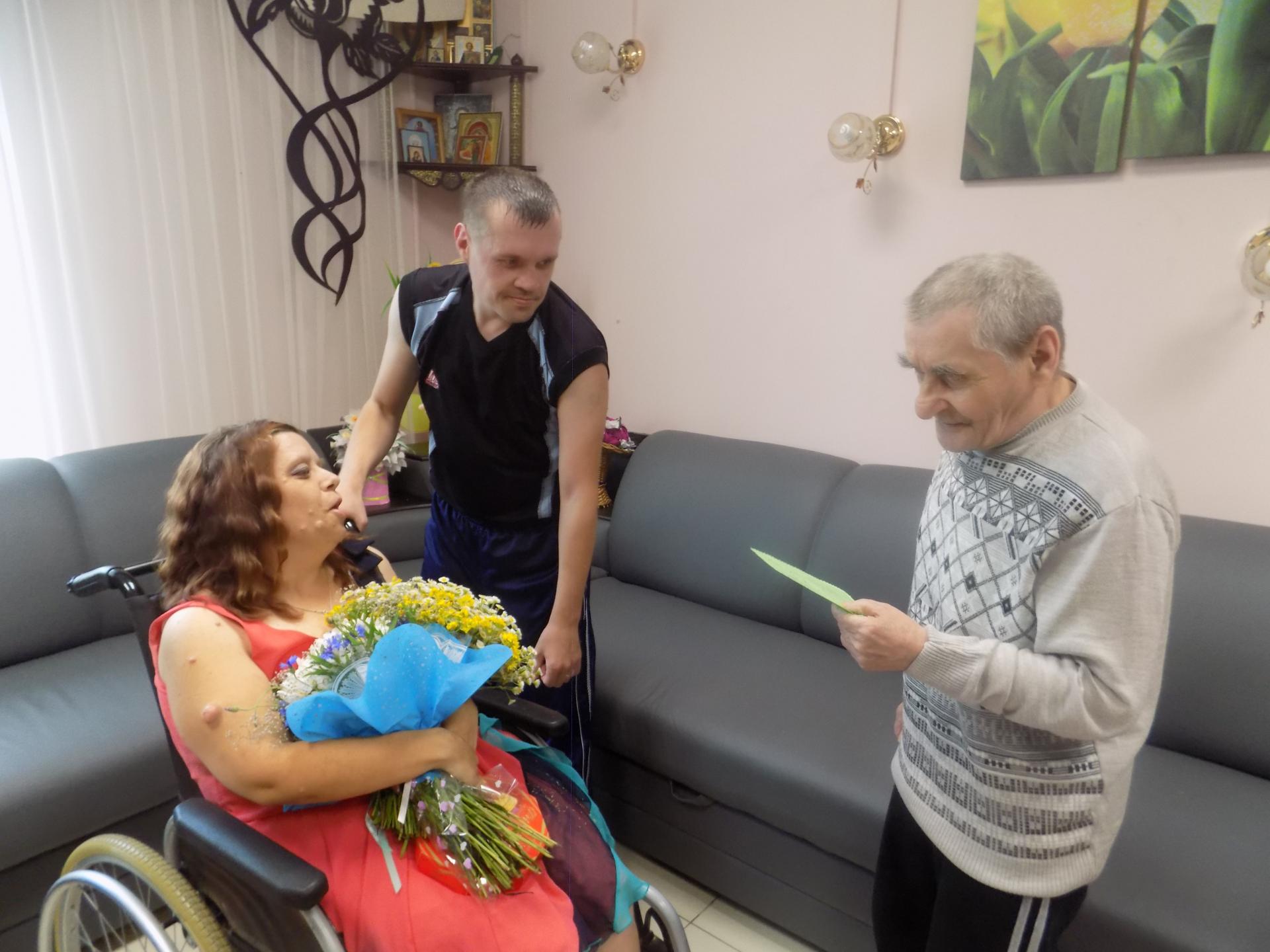 Работники ОМ «Резиденция цветов» так же не остались в стороне и поздравили свою подопечную с Днем Рождения, подарив букет цветов и сладкий подарок.
