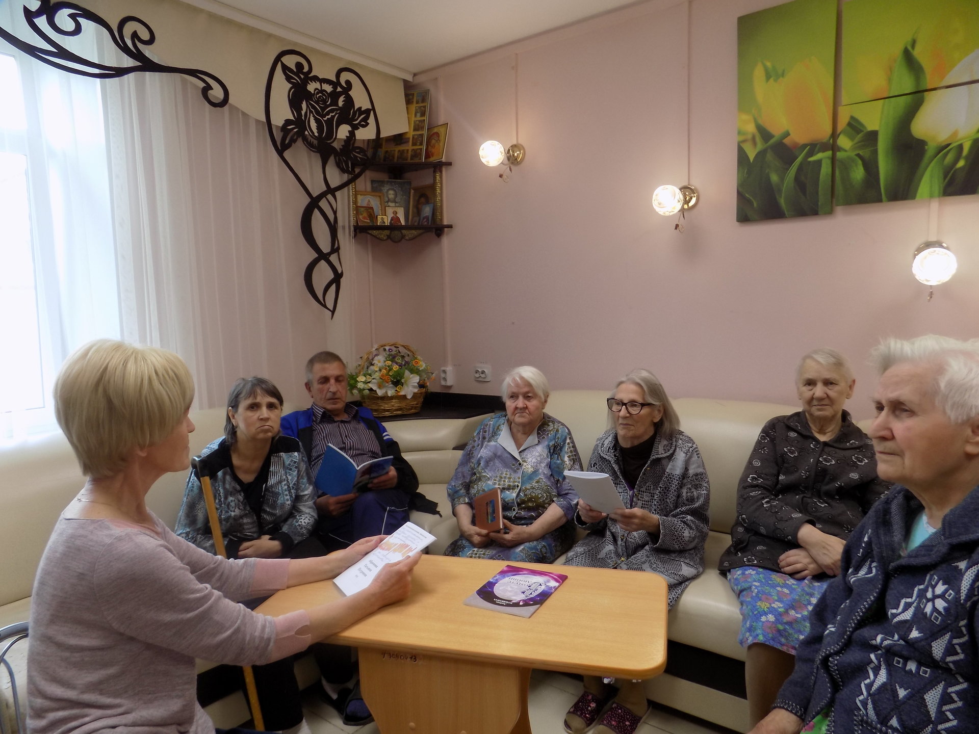 В соответствии с планом проведения мероприятий в отделении милосердия для граждан пожилого возраста и инвалидов «Резиденция цветов» в июле 2019 года проведена Литературная гостиная «Литературный мир Владимирского края». Старший библиотекарь Пестенькинского отдела обслуживания ЦБС Муромского района провела обзор книг, авторами которых являются жители Владимирской области. В основном книги повествуют о нашем крае и наших земляках. Художественные произведения В. Солоухина, С. Никитина, Ю. Морозова, стихи поэтов Т. Абрамовой, И. Петровой, документальные сборники вызвали живой интерес у участников мероприятия.