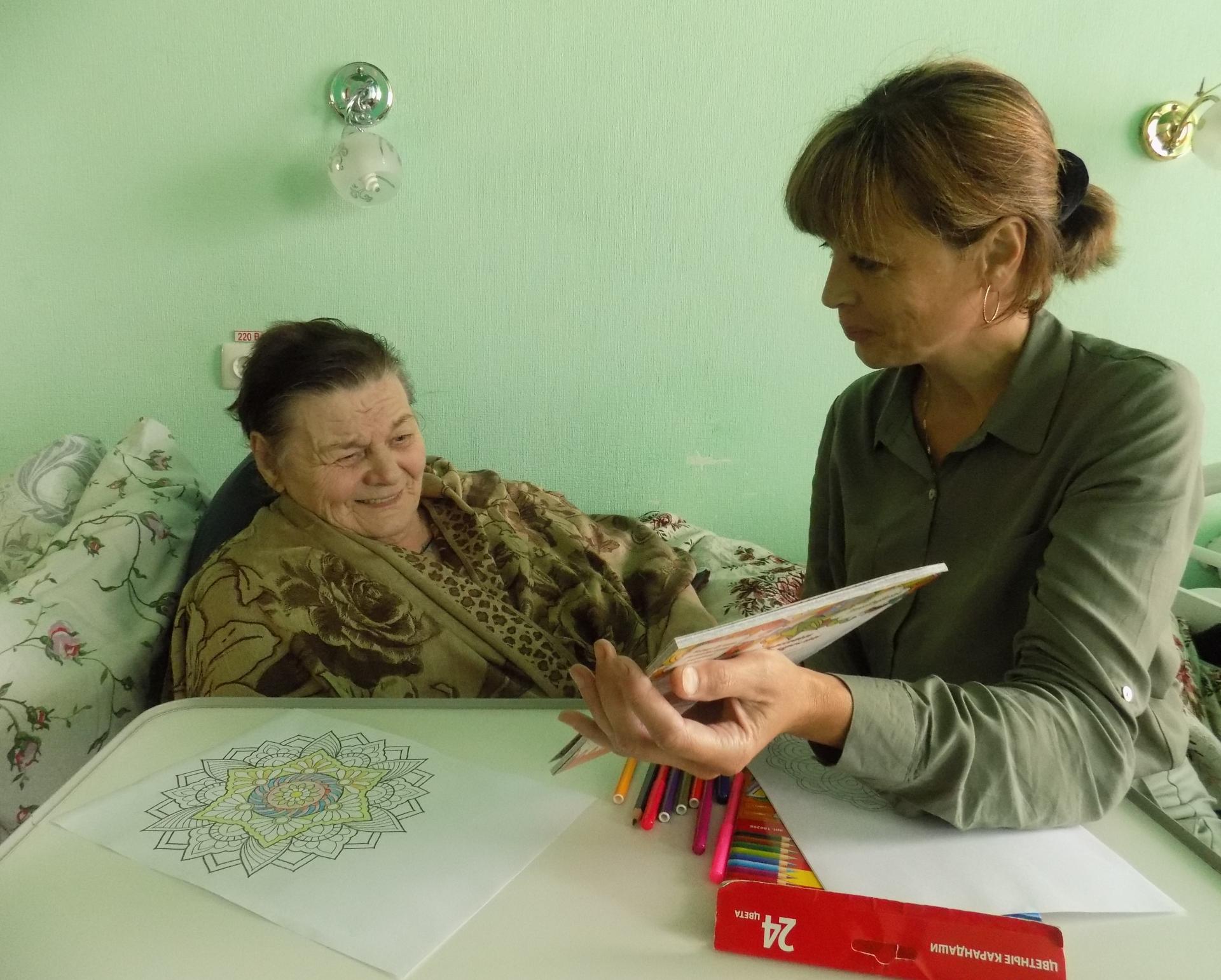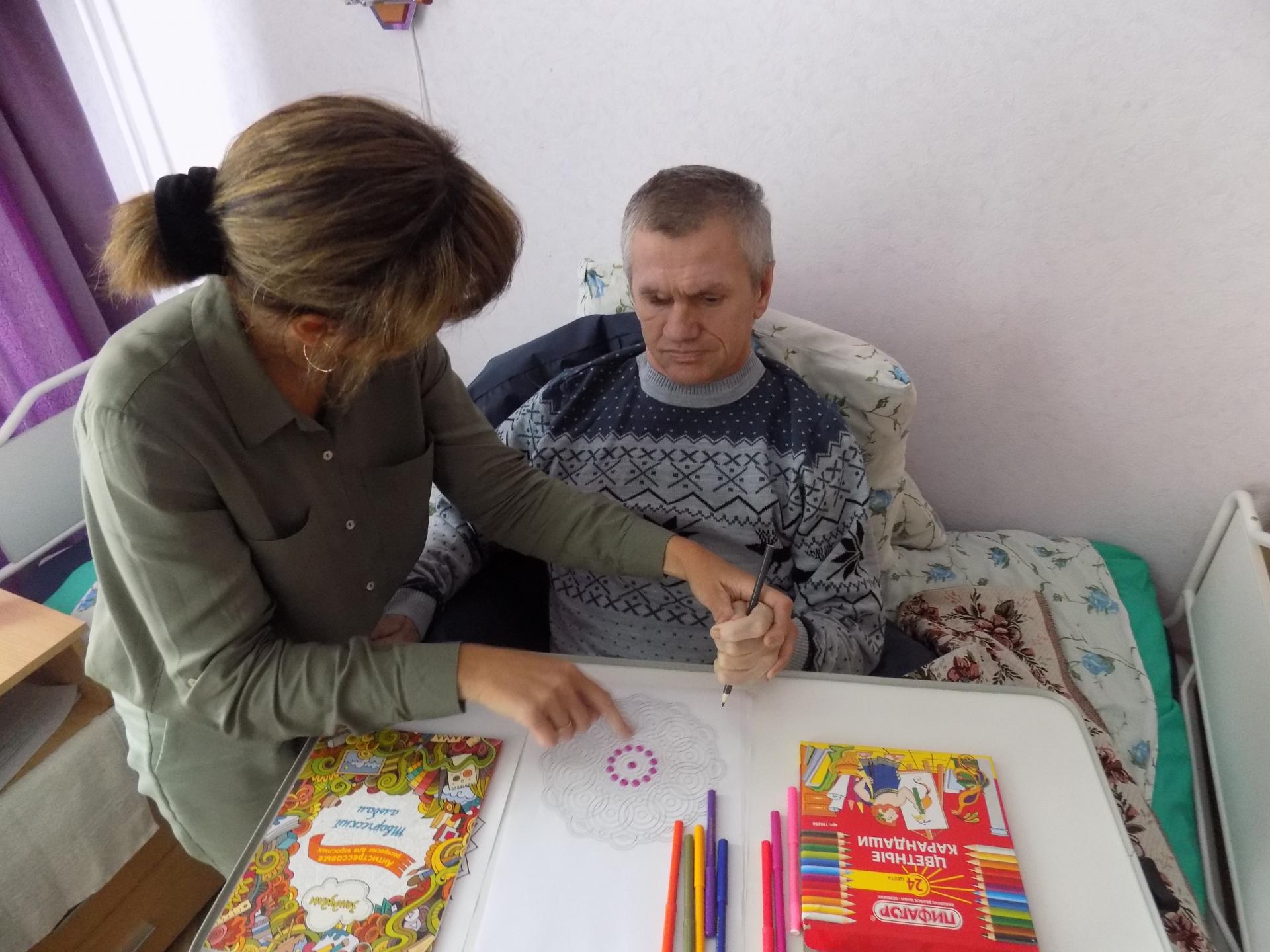В ОМ «Резиденция цветов» с получателями социальных услуг проведено занятие по изо-терапии. Проживающие отделения с удовольствием рисовали разнообразные орнаменты, вкладывая в работу всю свою душу и фантазию.