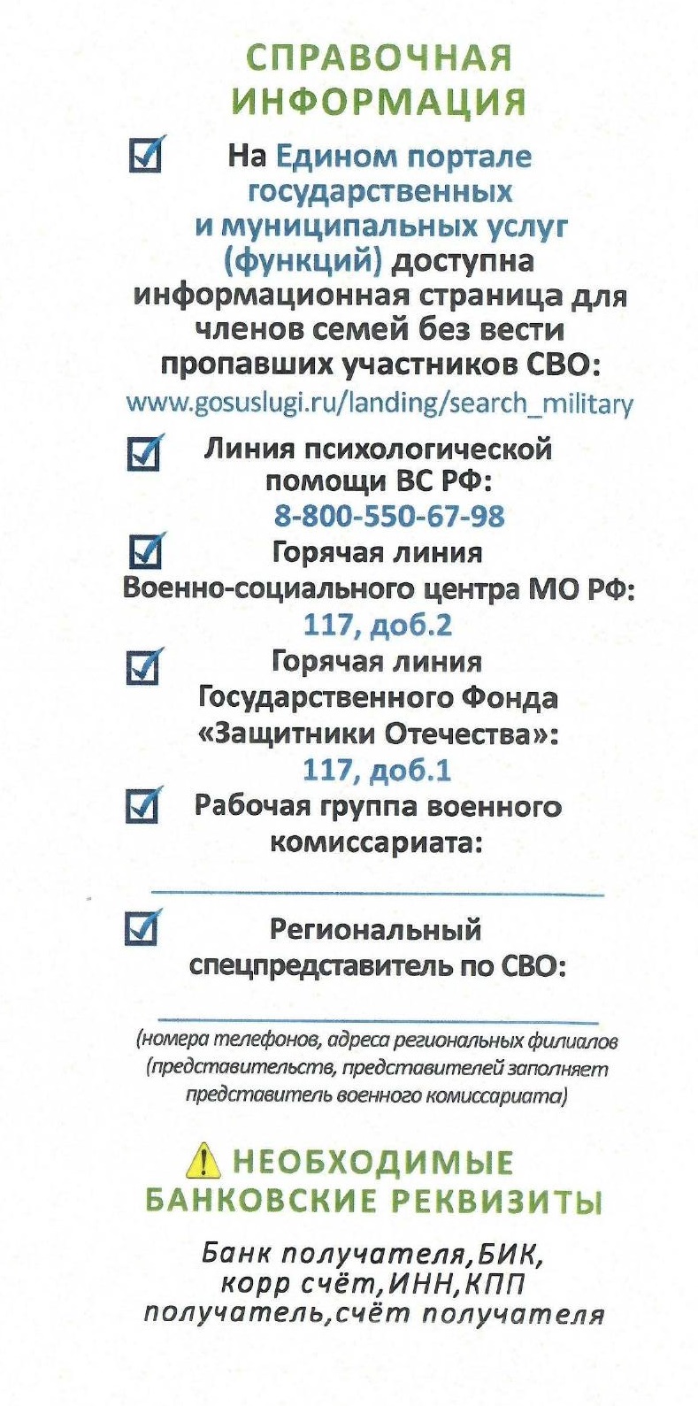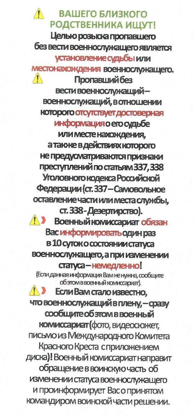 Памятка по поиску военнослужащего
