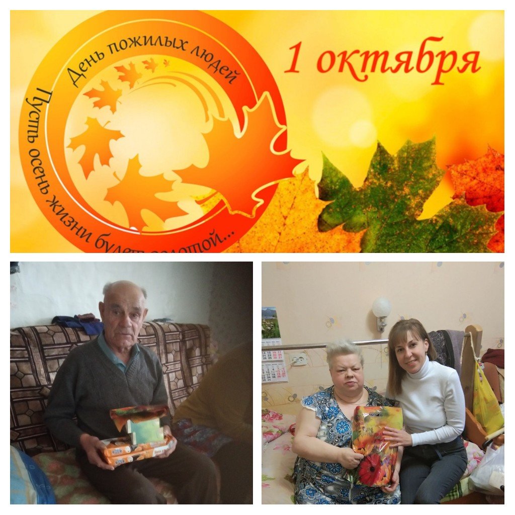 1 октября - это праздник человеческой мудрости, душевной щедрости – качеств, которыми наделены люди старшего поколения. Это не просто официальный праздник, а особый момент жизни, когда все самые добрые слова и помыслы обращены к людям, прошедшим большой жизненный путь. Не без особого внимания в этот день остались граждане пожилого возраста, состоящие на надомном обслуживании. Социальные работники отделений поздравили своих подопечных, каждому были адресованы самые теплые пожелания и вручены сладкие подарки.